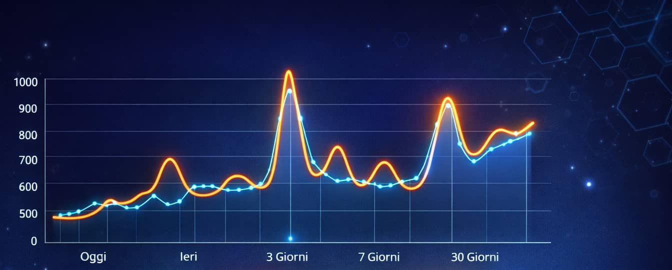 I livelli indicano l’intensità dei movimenti - quando è alta potrebbero esserci aggiornamenti algoritmici in corso.Se clicchi su un settore il grafico si aggiorna e ti mostra la vista specifica.